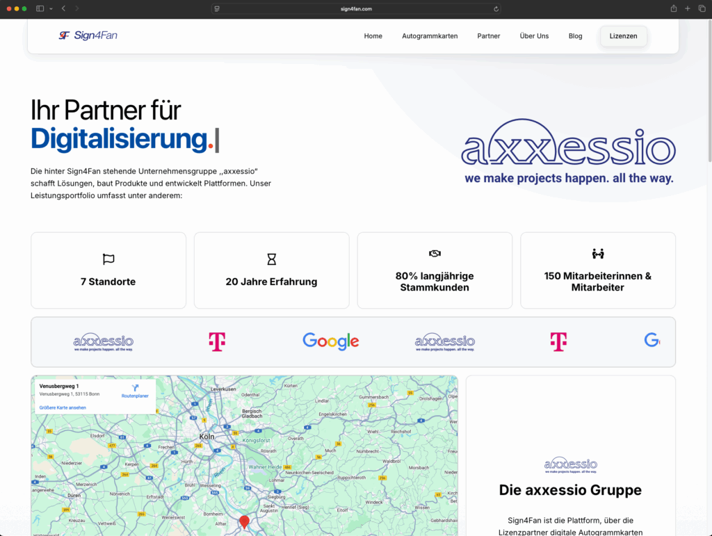 Um die Marke Sign4Fan erfolgreich zu positionieren, benötigte das Unternehmen einen modernen, klar strukturierten Webauftritt.